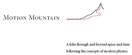 Eine moderne Einführung in die Physik, die auf jeder Seite spannend und überraschend ist. Ausgehend von den Erfahrungen im täglichen Leben werden die Begriffe und Anwendungen der Mechanik, Relativitätstheorie, Elektrodynamik, Quantentheorie, und der Vereinheitlichung der Wechselwirkungen dargestellt. 1606 Seiten, 110MB als pdf-Datei gratis zu laden. Sprache: Englisch. Motion Mountain Physikbuch This physics ebook in pdf format is free for everybody to store, read or print for personal use, and to distribute electronically, but only in unmodified form and at no charge. You are not allowed to use any part of this text in any product or service without my permission. If you have doubts, contact me at christoph@motionmountain.net. Motion Mountain Wiki (Testversion)
