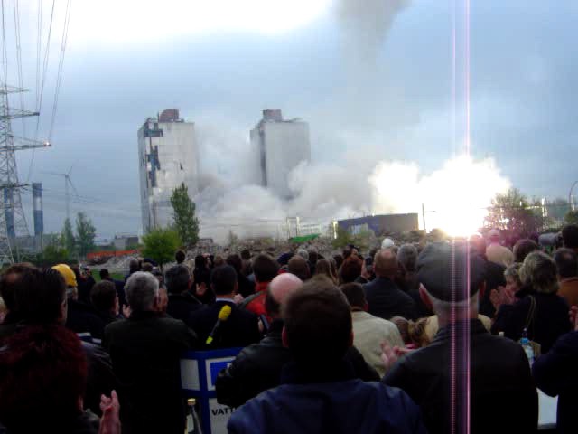 | Induktion / Ampèresches Gesetz Filmsequenz einer Schornsteinsprengung durch die HEW mit Notabschaltung der Oberlandleitung und sichtbarer Kraftänderung zwischen den Leitungsdrähten (mpg Video, 16MB ! ) |