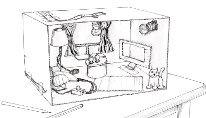 | Das neue Spielhaus, fertiger Bastelsatz mit Möbelvorlagen aus Pappe. Das mit Hilfe einer bebilderten Bastelanleitung problemlos aufzubauende Papphaus eignet sich nicht nur zum Elektrifizieren mit einfachen Reihen- und Parallelschaltungen (Material hierzu siehe Beleuchtungsset), es ist ein Eldorado für Nachwuchskünstler. 10 Stück ca. € 60,- www.ew-shop.de | Tipp: Herr Brandt Link |